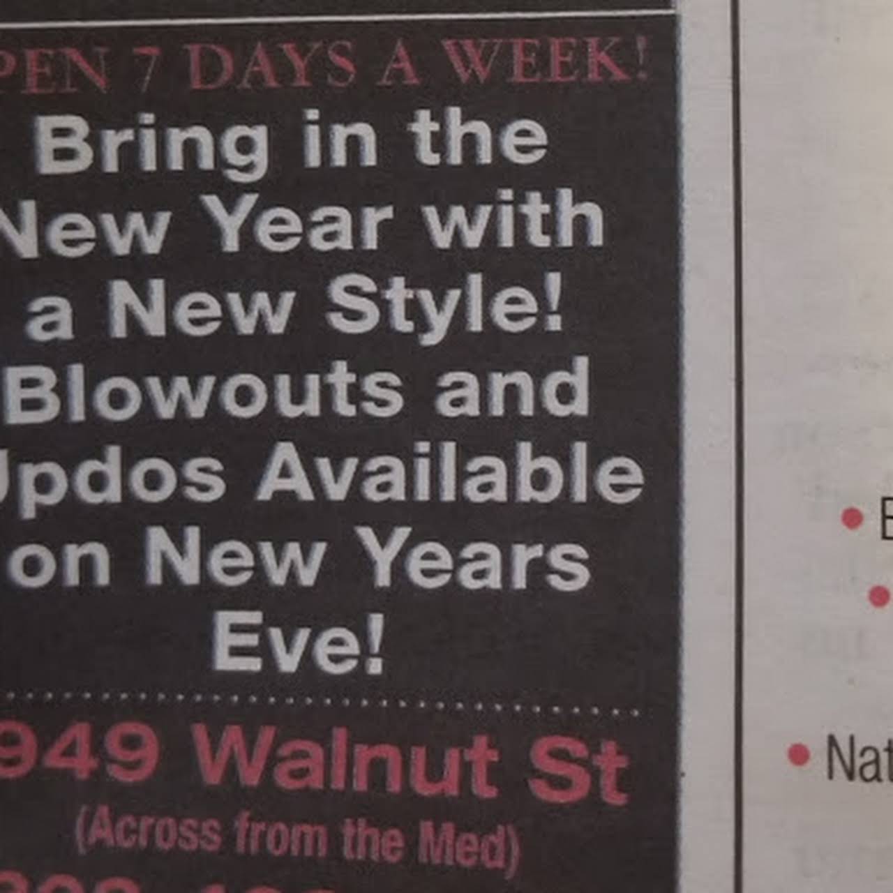 West End Salon 949 Walnut St. Bored with your haircut or color. West End Salon is a beautiful place that offers new opportunities a positive energy and is team oriented.